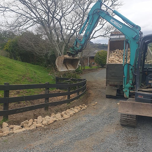 We can remetal your existing driveway or form a new drive or accessway for you. We can also sort out any damage caused by water or drainage issues. We can reshape driveways, dig new water tables, or get your driveway ready for concrete. We use rip rap or riverstone and source metal from the quarry closest to you for cost efficiencies.